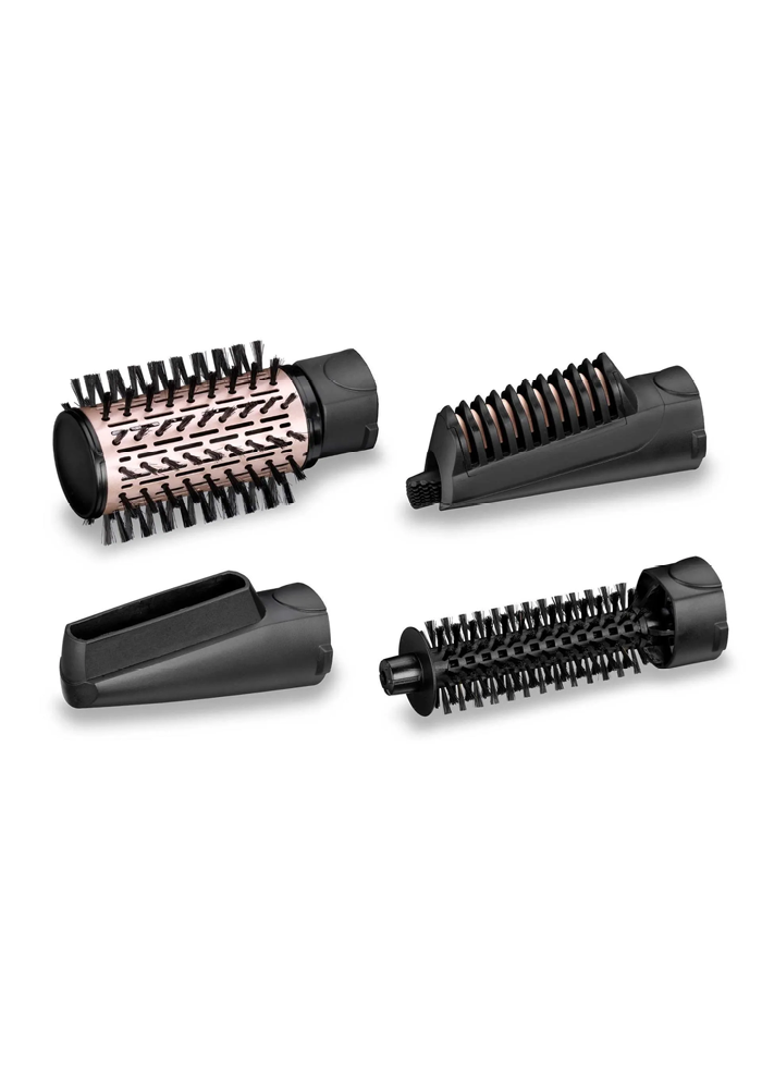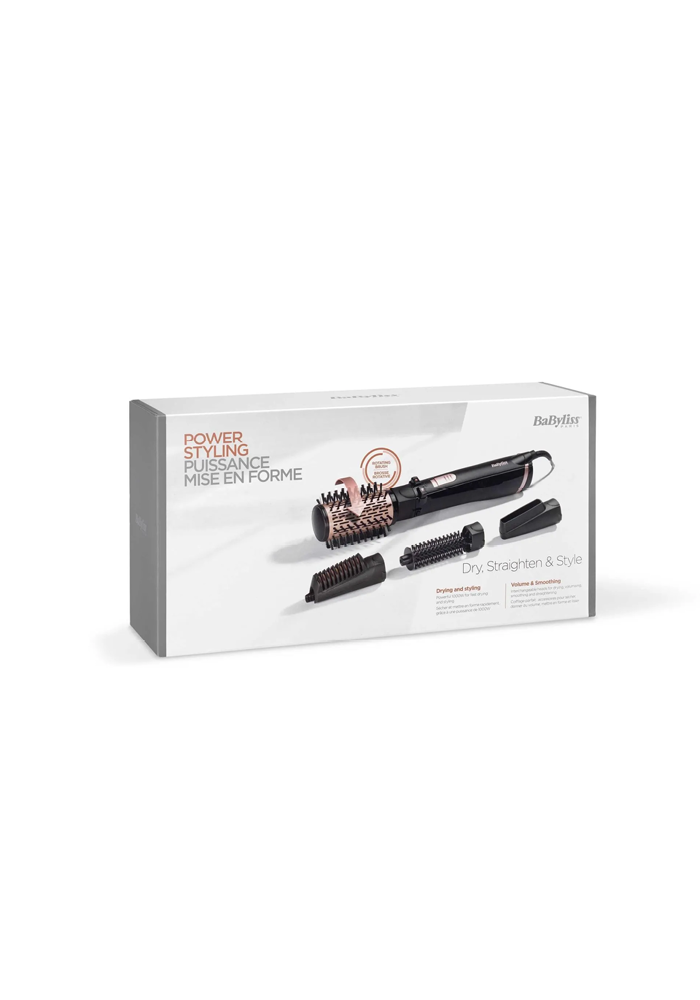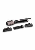 Фен-набор BaByliss AS 200E мощностью 1000 Вт с 2 скоростями, 2 температурными режимами и функцией холодного воздуха. В комплекте 4 насадки: концентратор, щётки и термощётка для объёма, локонов и выпрямления.