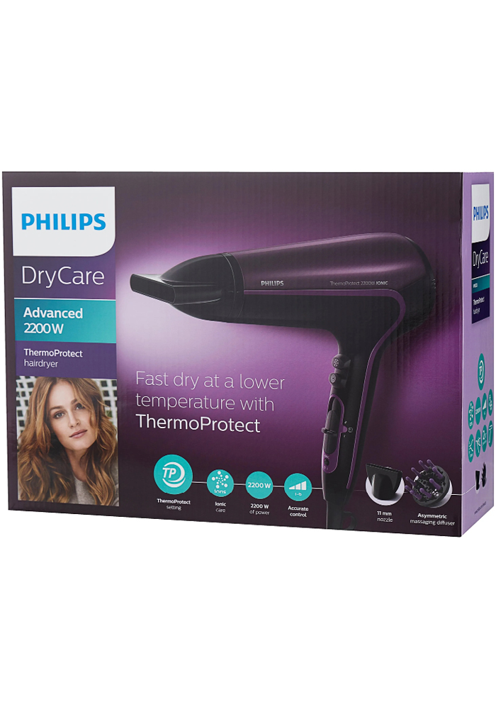 Модель оснащена шестью режимами скорости и температуры, что даёт возможность подобрать оптимальные параметры под любой тип волос. Дополнительная функция ThermoProtect защищает волосы от перегрева, сохраняя их естественную силу и блеск.