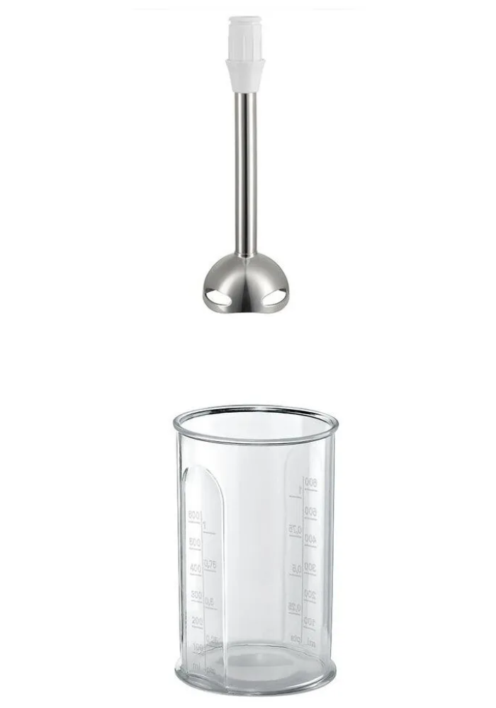 В комплект входят 2 венчика для взбивания и 2 крюка для замеса теста из нержавеющей стали. Дополнительно предусмотрены погружной блендерный модуль и измельчитель, что значительно расширяет функциональность прибора и делает его универсальным помощником на кухне.
