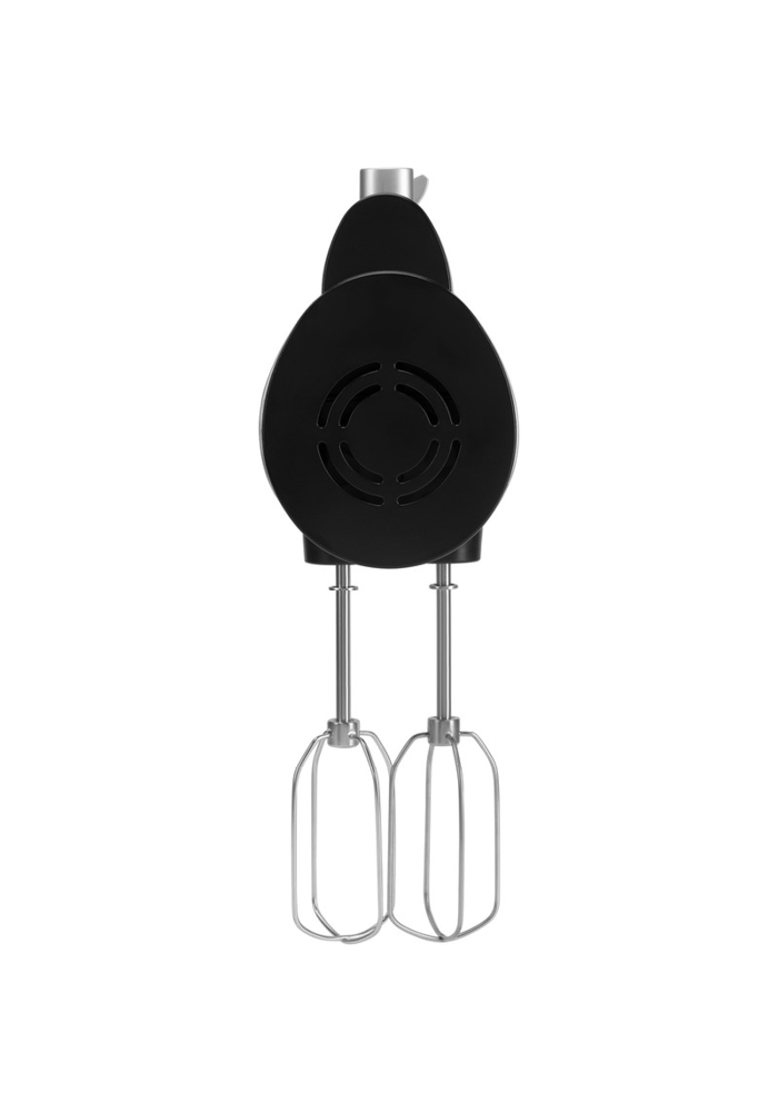 Polaris PHM 5009A — ручной миксер мощностью 500 Вт с 5 скоростями и турборежимом. В комплекте венчики и крюки для теста из нержавеющей стали. Стильный чёрный корпус.