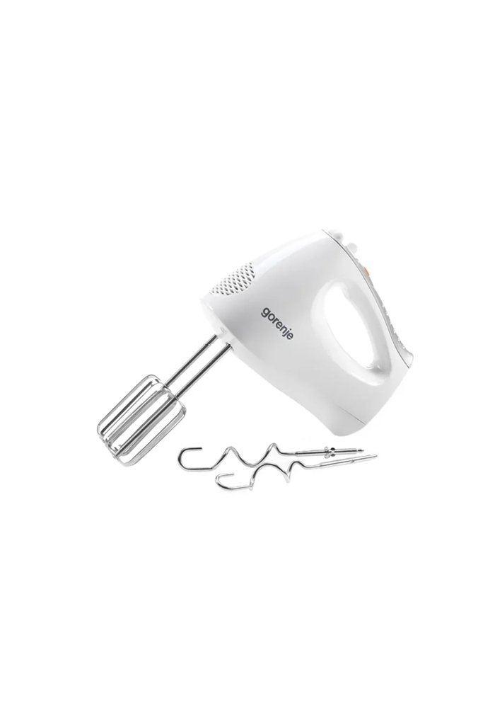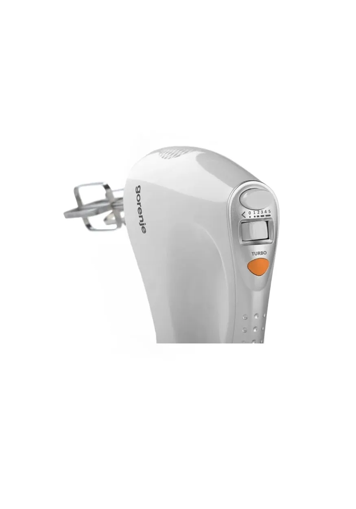 Ручной миксер Gorenje M450WS мощностью 450 Вт с 5 скоростями и турборежимом. В комплекте венчики и крюки для теста из нержавеющей стали. Стильный, компактный и удобный в использовании.