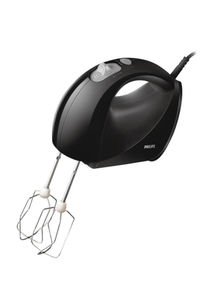 Philips HR1560/20 — ручной миксер мощностью 350 Вт с 3 скоростями и турборежимом. В комплекте венчики и крюки из нержавеющей стали. Стильный чёрный корпус.